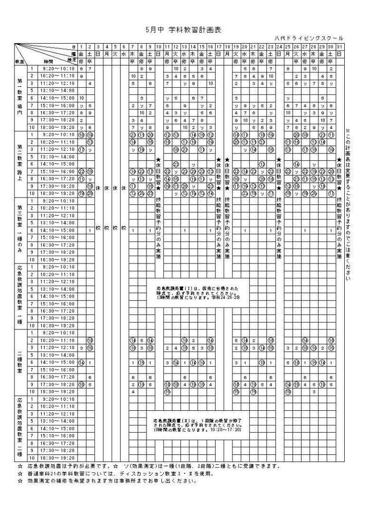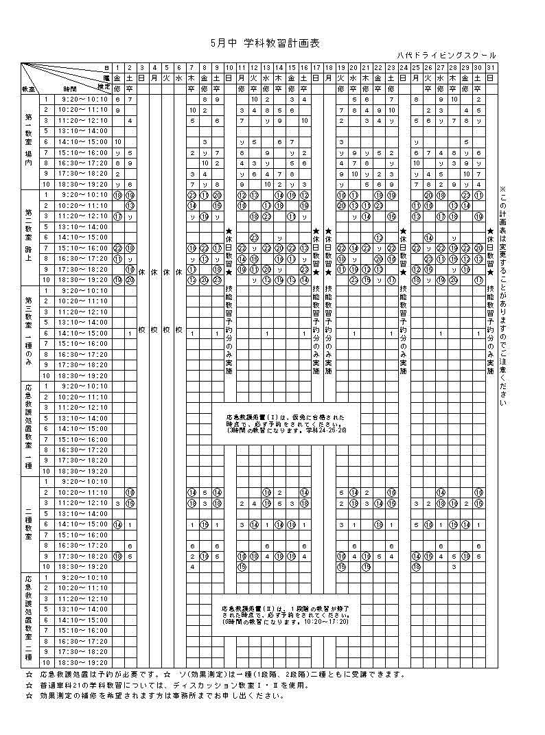 R8年5月学科教習計画表